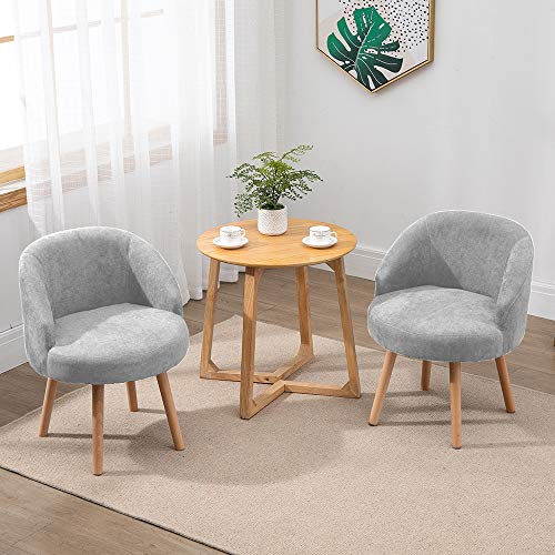 QIHANG-UK Linen Fabric Tub Chairs Set of 2, Lounge Armchair for Small Spaces, Bucket Armchairs for Living Room Cafe, Sofa Side Occasional Chair, Small Bedroom Chairs (Grey)