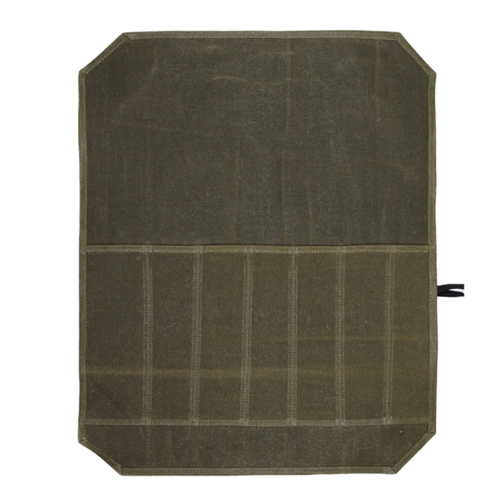 (Army Green) Waterproof Waxed Canvas Chef Knife Scissors Storage Pouch Roll Bag 7 Slots Carrying Case for Kitchen Knives Tools