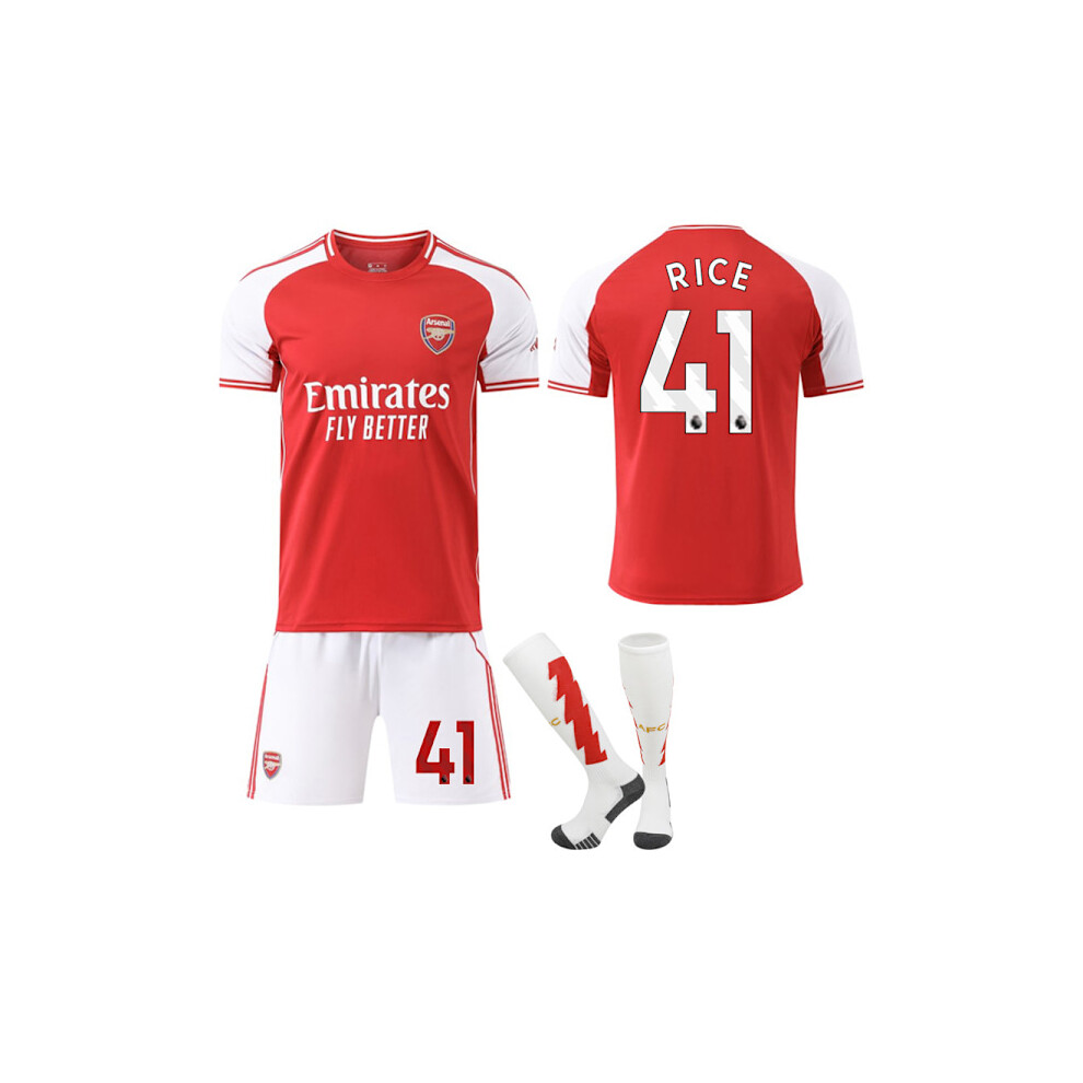 25-26 Arsenal FC Home NO.41 RICE Jerseys Set Kids Adult Football Kit with Socks NO.41 XL