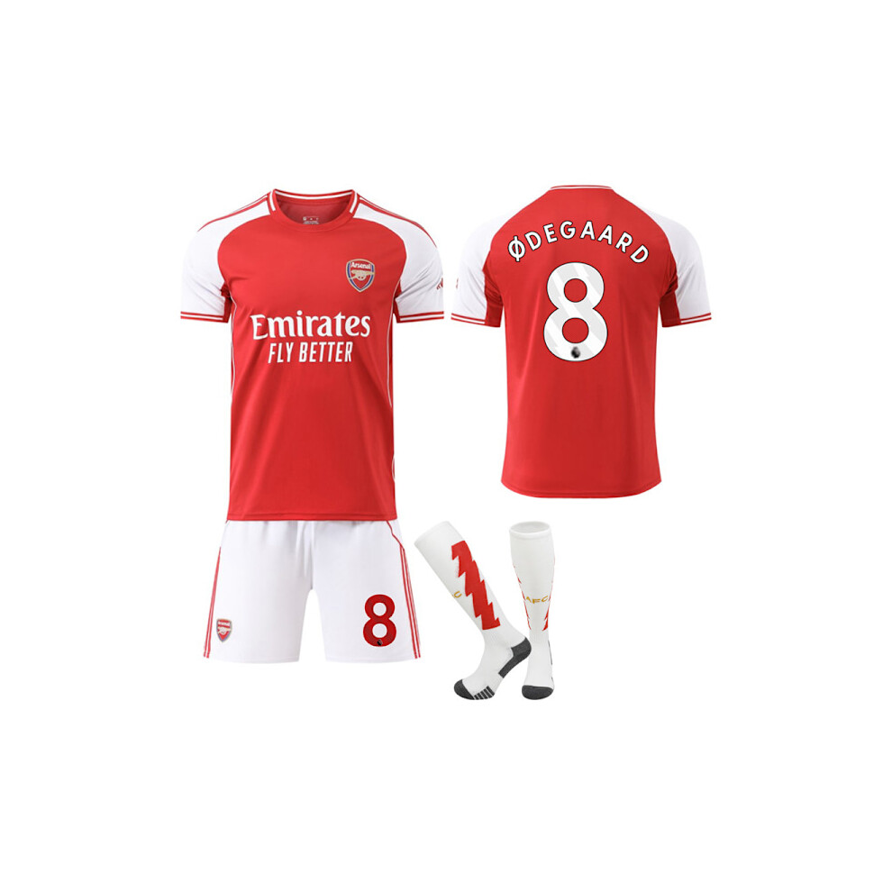 25-26 Arsenal FC Home NO.8 Ãdegaard Jerseys Set Kids Adult Football Kit with Socks NO.8 XXL