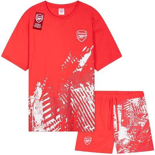Get Trend Arsenal F.C. Mens Pyjamas Set Short PJs Breathable Nightwear Sleepwear Summer Lounge Set Football Gifts for Men (M, Red Arsenal)