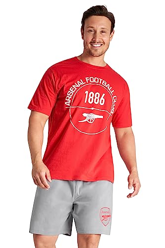 Arsenal F.C. Mens Pyjamas Set Short PJs Lounge Set Comfy Sleepwear Breathable Soft Nightwear Football Gifts for Men (Red/Grey, 2XL)