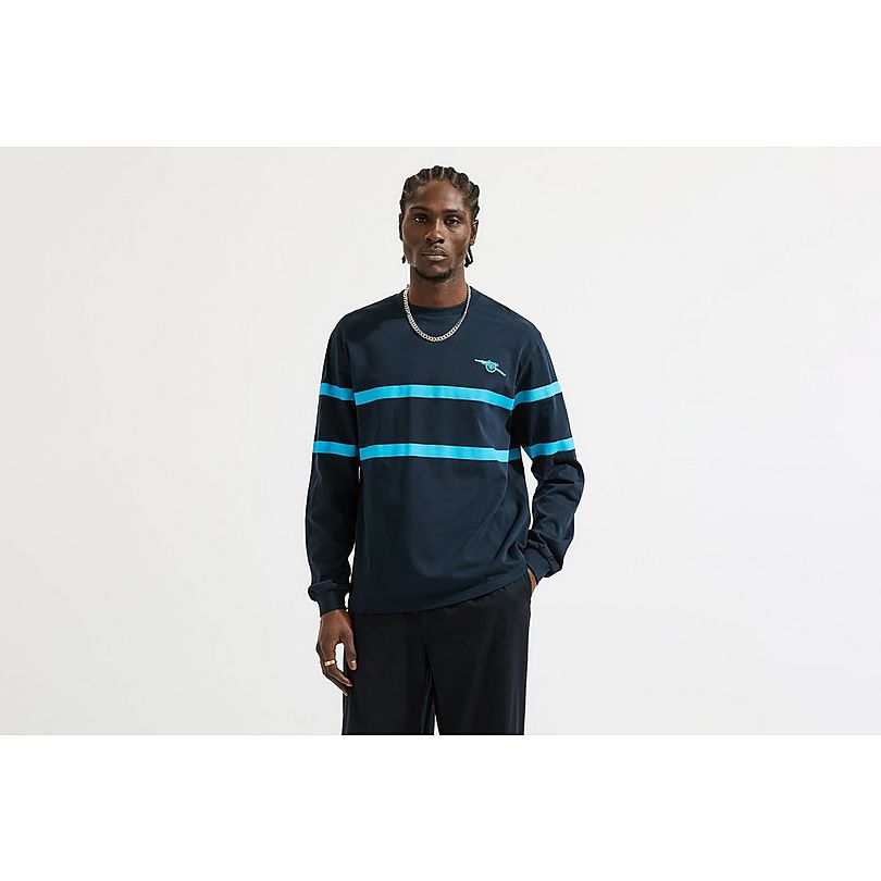 Arsenal Double Stripe Navy Long Sleeve Unisex T-Shirt, Blue