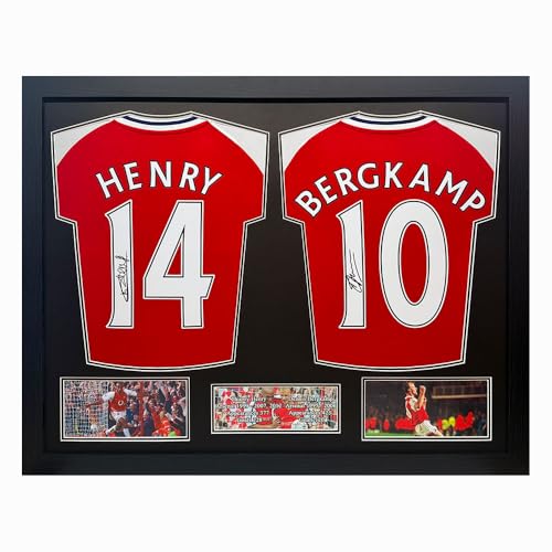 Allstarsignings Dennis Bergkamp and Thierry Henry Signed and Framed Arsenal Shirts with COA and Proof Red