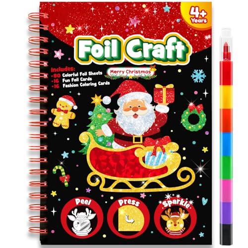 LIKYMO Foil Art for Kids - Foil Craft Book Art and Craft for Kids, DIY Creative Activity Gifts for 4 5 6 7 8 9 Year Old Girls Boys (Christmas)