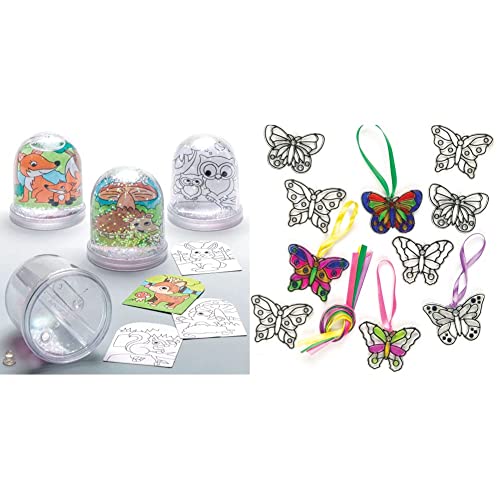 Baker Ross AR618 Woodland Animal Colour-in Snow Globes Value Pack — Creative Art and Craft Supplies for Kids to Make & ET815 Butterfly Mini Suncatcher Decorations For Kids Arts and Crafts