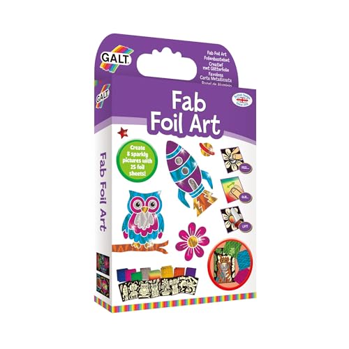 Galt Fab Foil Art - Creative Craft Kits for Kids and Childrens Fun Foil Art Activity Set for Girls and Boys - Includes Guide Book, 25 Colourful Foil Sheets and 8 Sparkly Pictures - Age 6 Years Plus