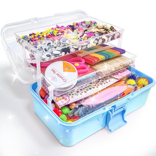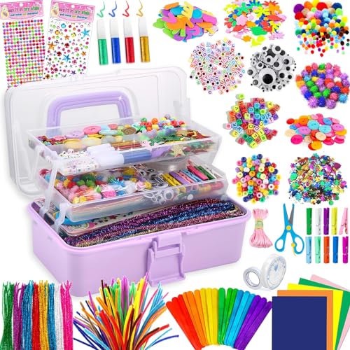 Arts and Crafts for Kids 1000+ Pieces - Pom Poms, Pipe Cleaners, Tissue Paper, Gem Stickers, Shredded Paper, Craft Sticks - Art Supplies Craft Kits for Kids