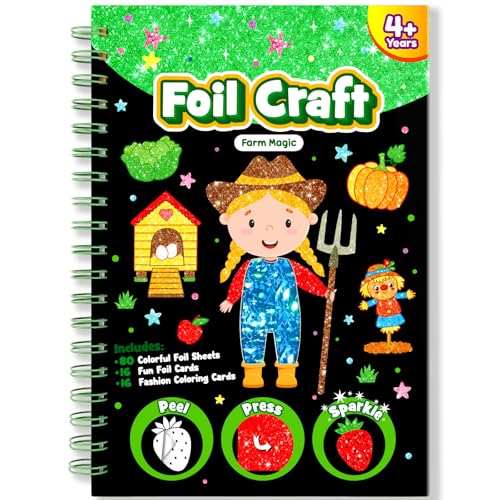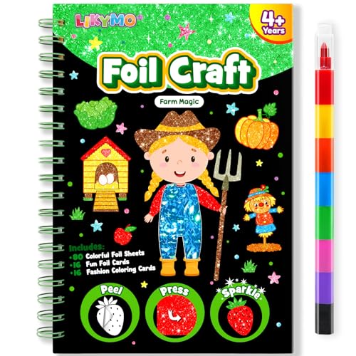 LIKYMO Foil Art for Kids - Foil Craft Book Art and Craft for Kids, DIY Creative Activity Gifts for 4 5 6 7 8 9 Year Old Girls Boys (Farms)