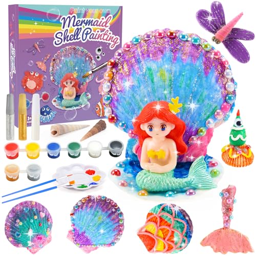 Art and Craft Kits for Kids Age 4-12, Kids Shell Painting Set 4-12 Year Old Girl Gifts Mermaid Toys for 4-10 Year Old Girl Gifts Girls Birthday Presents Air Clay Christmas Xmas Gifts for Kids
