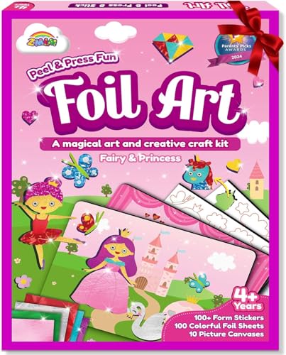 ZMLM Foil Art Craft Kits for Kids - Foil Craft for 4 Year Old Girl Gifts, Fun Mess Free Colouring Arts and Crafts Birthdays Present Travel Toys for 4 Year Old Girls