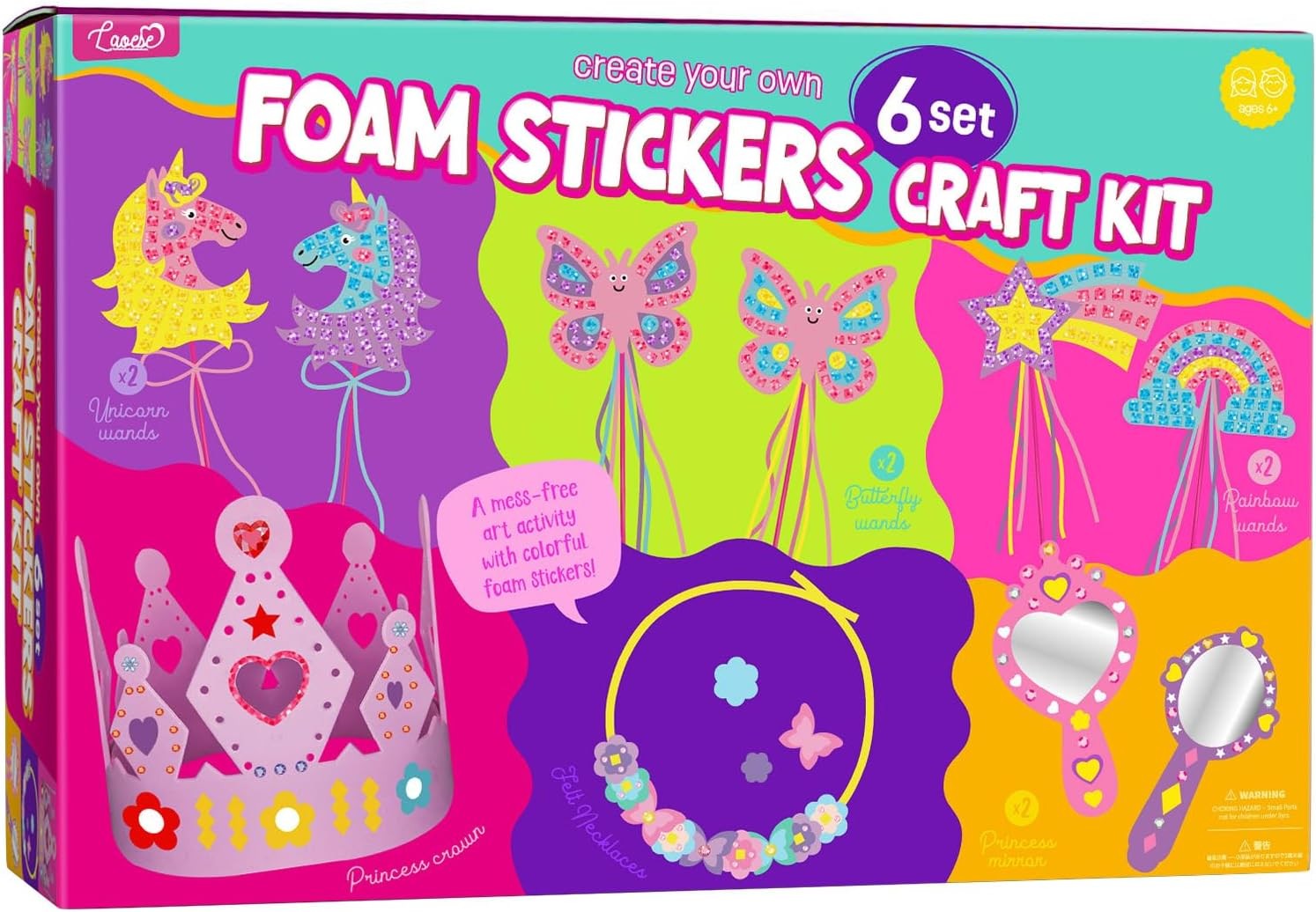 LAOESE Foam Stickers Kids Craft - 6 Set Art and Craft for Kids Ages 6-8, Princess Themed Craft Projects, Kid Toys Gift for Girls Ages 6 7 8-12