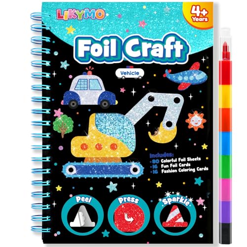 LIKYMO Foil Art for Kids - Foil Craft Book Art and Craft for Kids, DIY Creative Activity Gifts for 4 5 6 7 8 9 Year Old Girls Boys (Vehicles)