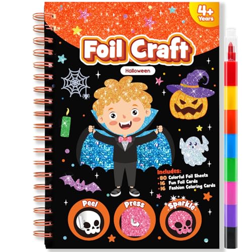 LIKYMO Halloween Foil Art for Kids - Foil Craft Book Art and Craft for Kids, DIY Creative Activity Gifts for 4 5 6 7 8 9 Year Old Girls Boys (Halloween)
