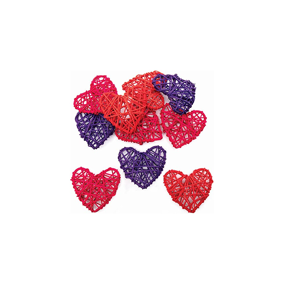 Valentines Rattan Hearts - Pack of 10, Natural Art and Craft Supplies for Kids (FC312)