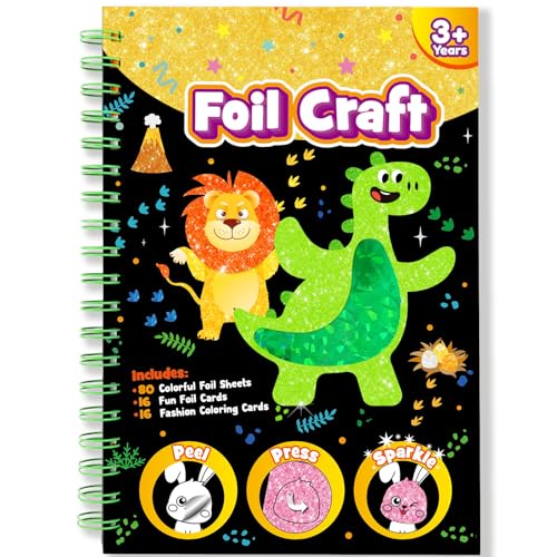 LIKYMO Foil Art for Kids - Foil Craft Book Art and Craft for Kids, DIY Creative Activity Gifts for 4 5 6 7 8 9 Year Old Girls Boys (Dinosaurs)