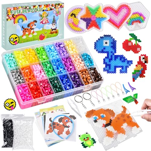 DazSpirit 10000pcs Fuse Beads Craft Kit, 36 Colours 5mm Fuse Beads with 104 Pattern Sheets Arts and Crafts for Kids, Comes with Tweezers, Pegboards, Ironing Papers, Iron Bead Art Craft Kits for Kids