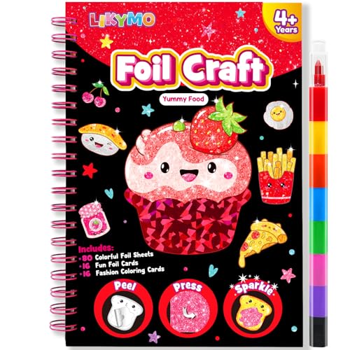 LIKYMO Foil Art for Kids - Foil Craft Book Art and Craft for Kids, DIY Creative Activity Gifts for 4 5 6 7 8 9 Year Old Girls Boys (Dessert)