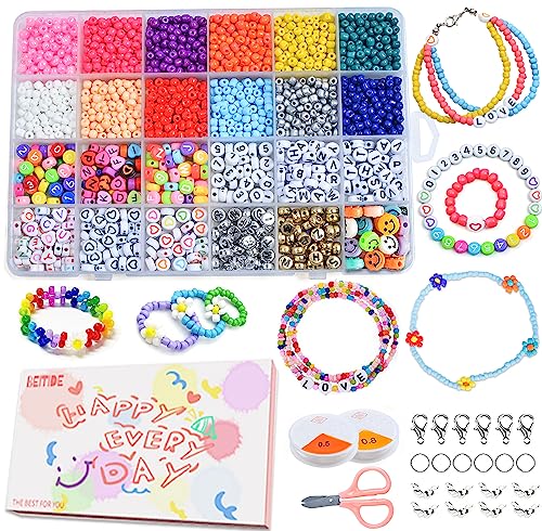 Glass Seed Beads 6720pcs 3mm and Alphabet Letter Beads for Jewelry Making Kit, Friendship Bracelets Art Craft Kit for Kids Girls Adults Gift