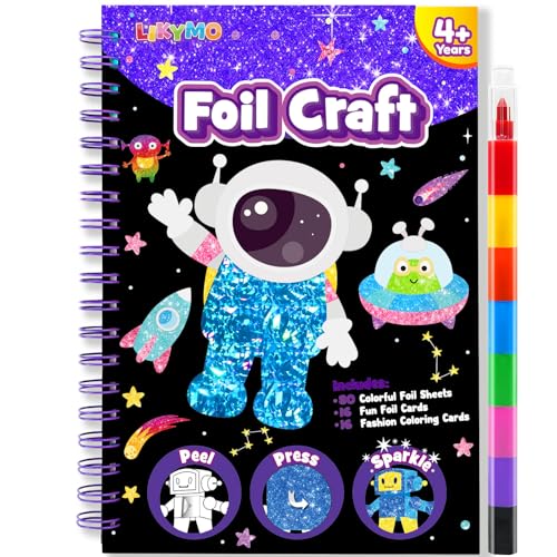 LIKYMO Foil Art for Kids - Foil Craft Book Art and Craft for Kids, DIY Creative Activity Gifts for 4 5 6 7 8 9 Year Old Girls Boys (Planet)