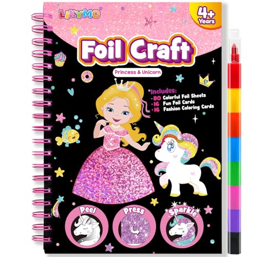 LIKYMO Foil Art for Kids - Foil Craft Book Art and Craft for Kids, DIY Creative Activity Gifts for 4 5 6 7 8 9 Year Old Girls Boys (Princess)