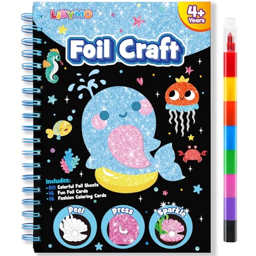 LIKYMO Foil Art for Kids - Foil Craft Book Art and Craft for Kids, DIY Creative Activity Gifts for 4 5 6 7 8 9 Year Old Girls Boys (Ocean)