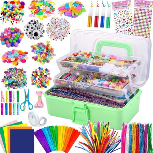 KreativeKraft Arts and Crafts for Kids 1000+ Pieces - Pom Poms, Pipe Cleaners, Tissue Paper, Gem Stickers, Shredded Paper, Craft Sticks - Art Supplies Craft Kits for Kids