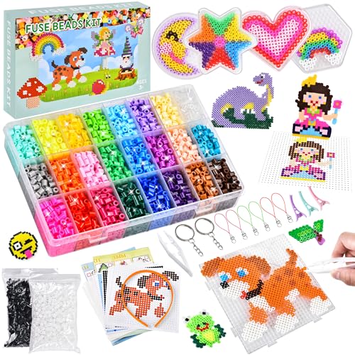 DazSpirit 6300pcs Fuse Beads Craft Kit, 26 Colours 5mm Fuse Beads with 104 Pattern Sheets Arts and Crafts for Kids, Comes with Tweezers, Pegboards, Ironing Papers, Iron Bead Art Craft Kits for Kids