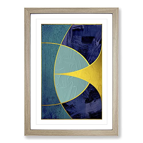 Big Box Art Sweeping Forms Blue Gold Framed Wall Art Picture Print Ready to Hang, Oak A2 (62 x 45 cm)
