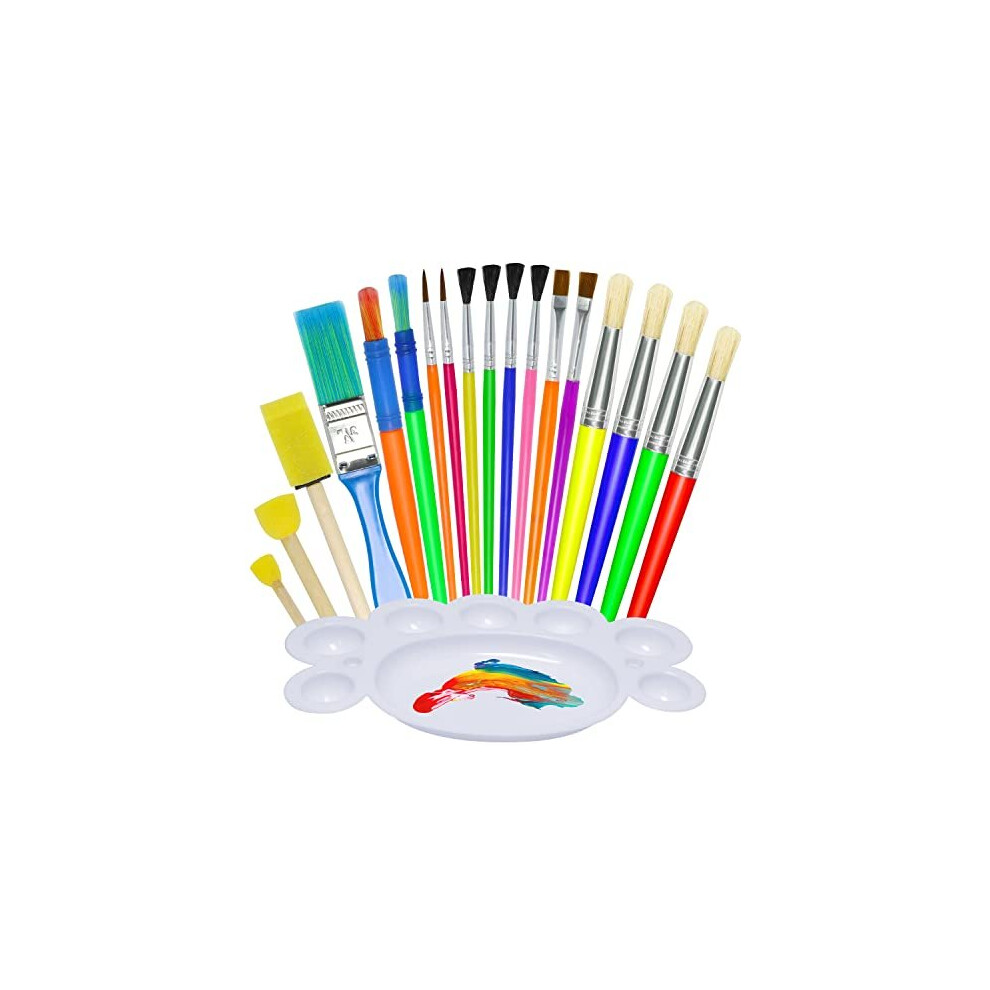 Jiosdo Kids Paint Brushes, 19Pcs Childrens Painting Brushes Set with Paint Palettes, Colorful Paint Brushes for Children Toddlers Beginners, Art Paint