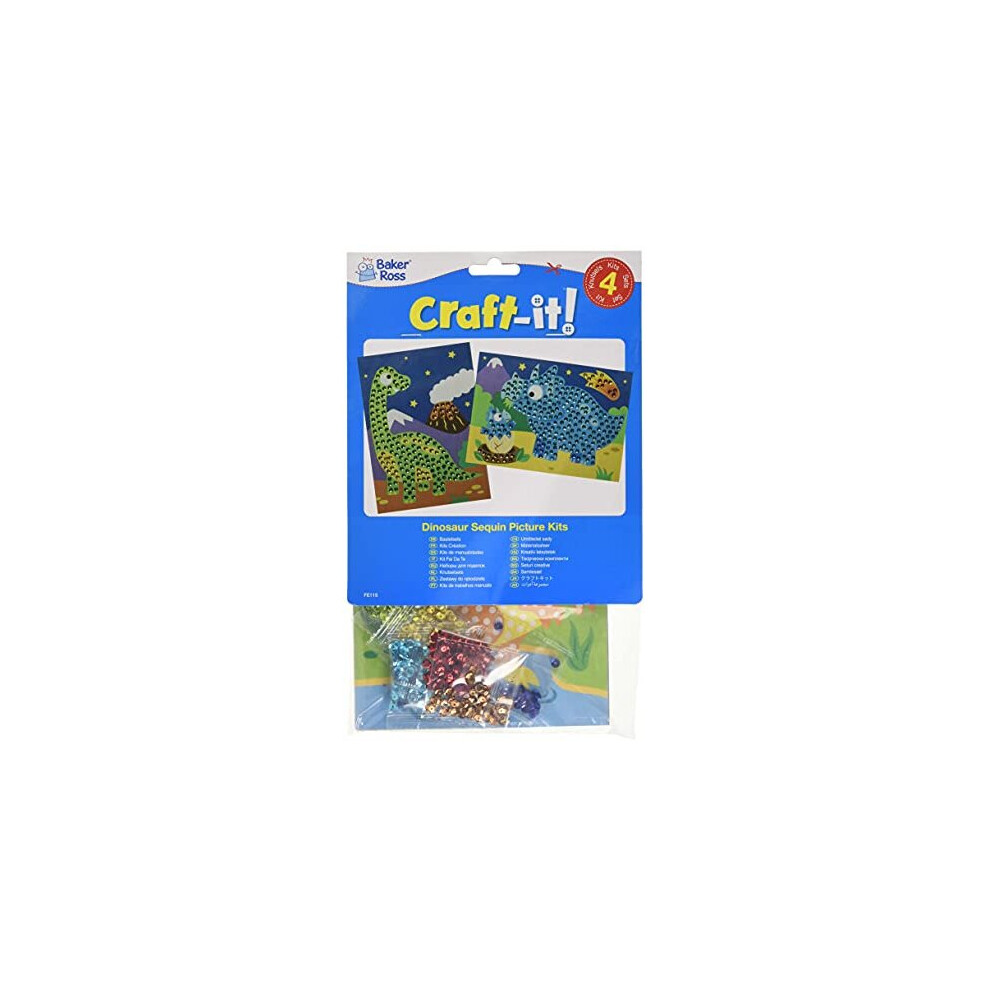 FE115 Dinosaur Sequin Art Kits - Pack of 4, Make Your Own Childrens Art Set, Creative Activities for Kids, Decorate Your Own Arts and Crafts Project