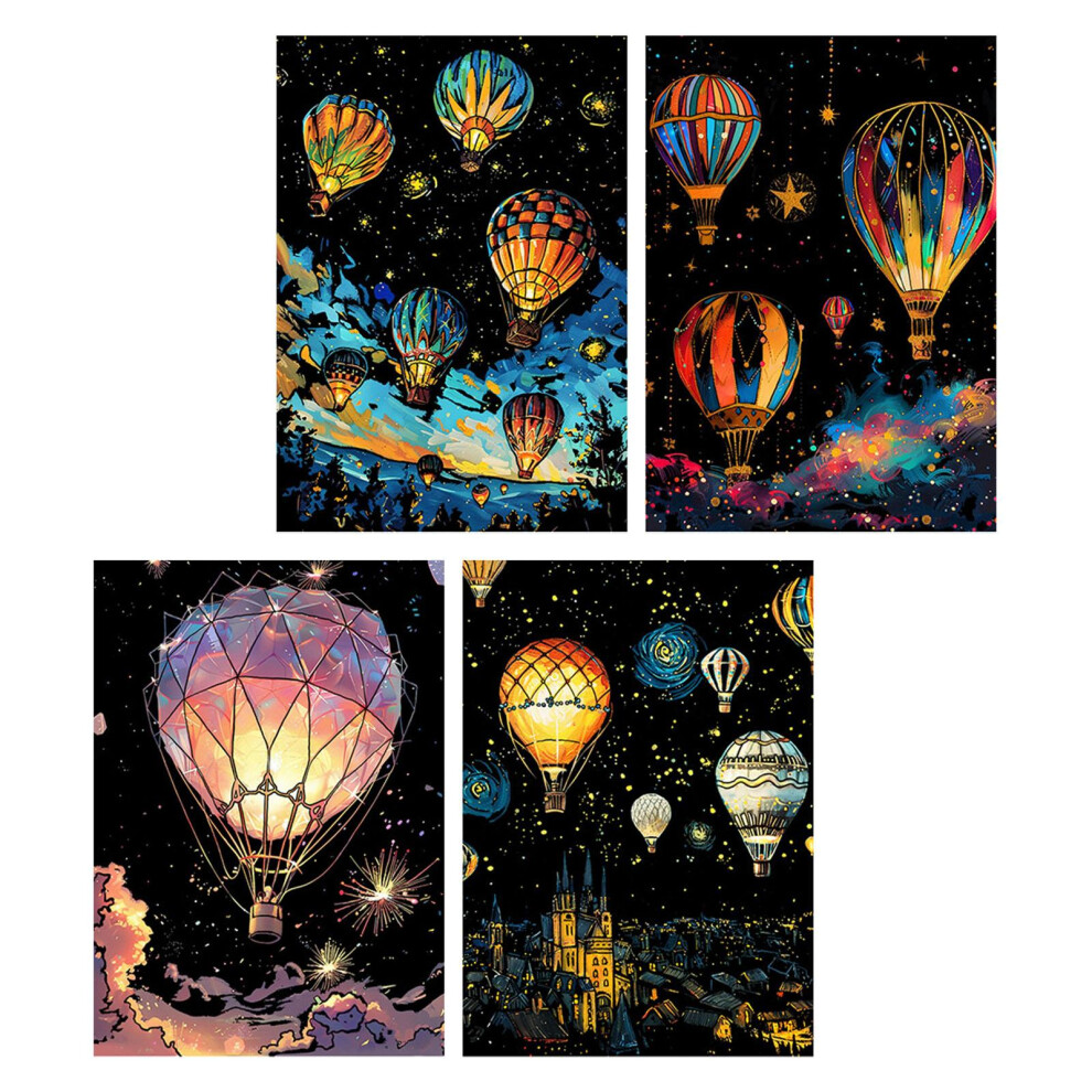 (Hot air balloon, 21x295cm) 4x Scratch Paper Art Set Educational Childrens Crafts Projects Kits