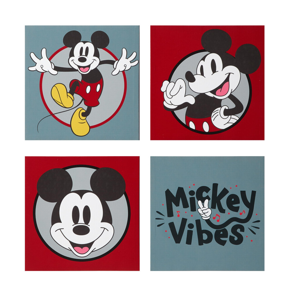Idea Nuova Disney Mickey Mouse Retro 4 Pack Canvas Wall Art Set,Childrens Wall Hanging Décor,Each Piece 12"x12"