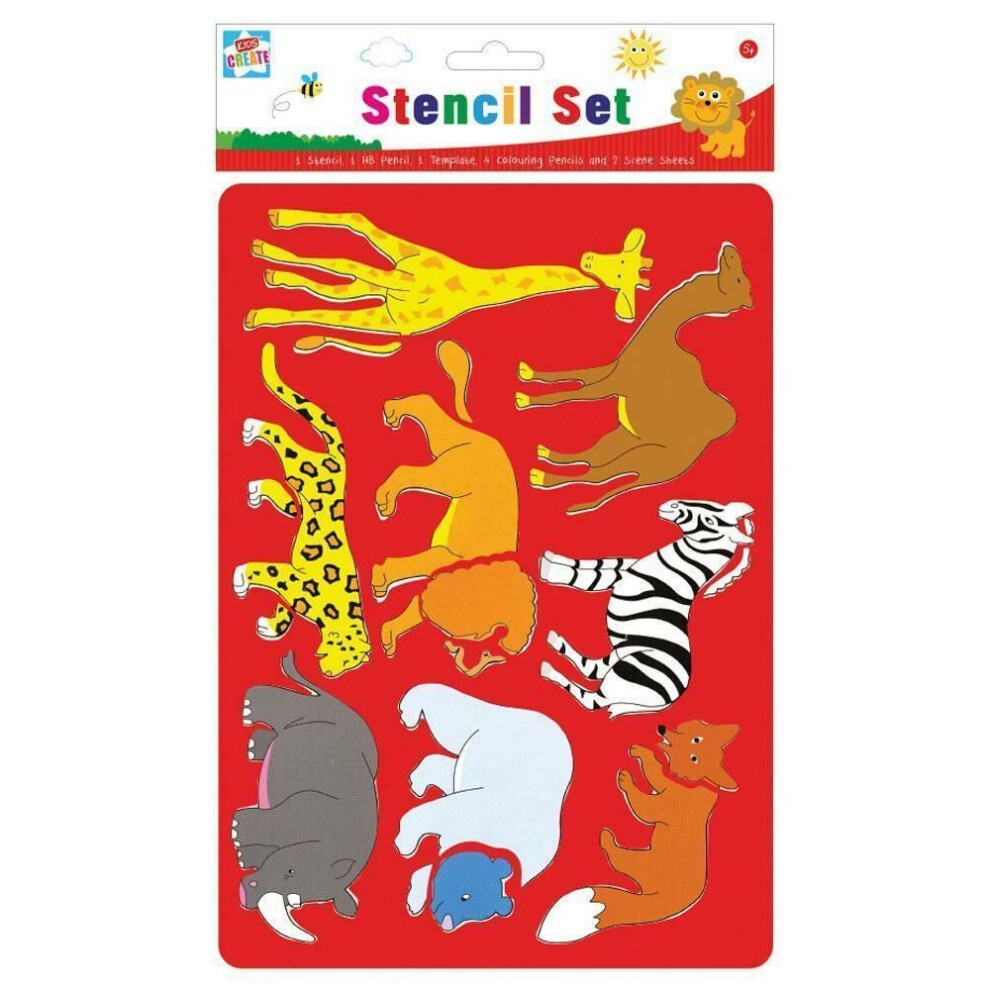 Childrens Stencil Set Art Craft School Wild Safari Animals Designs with Pencil