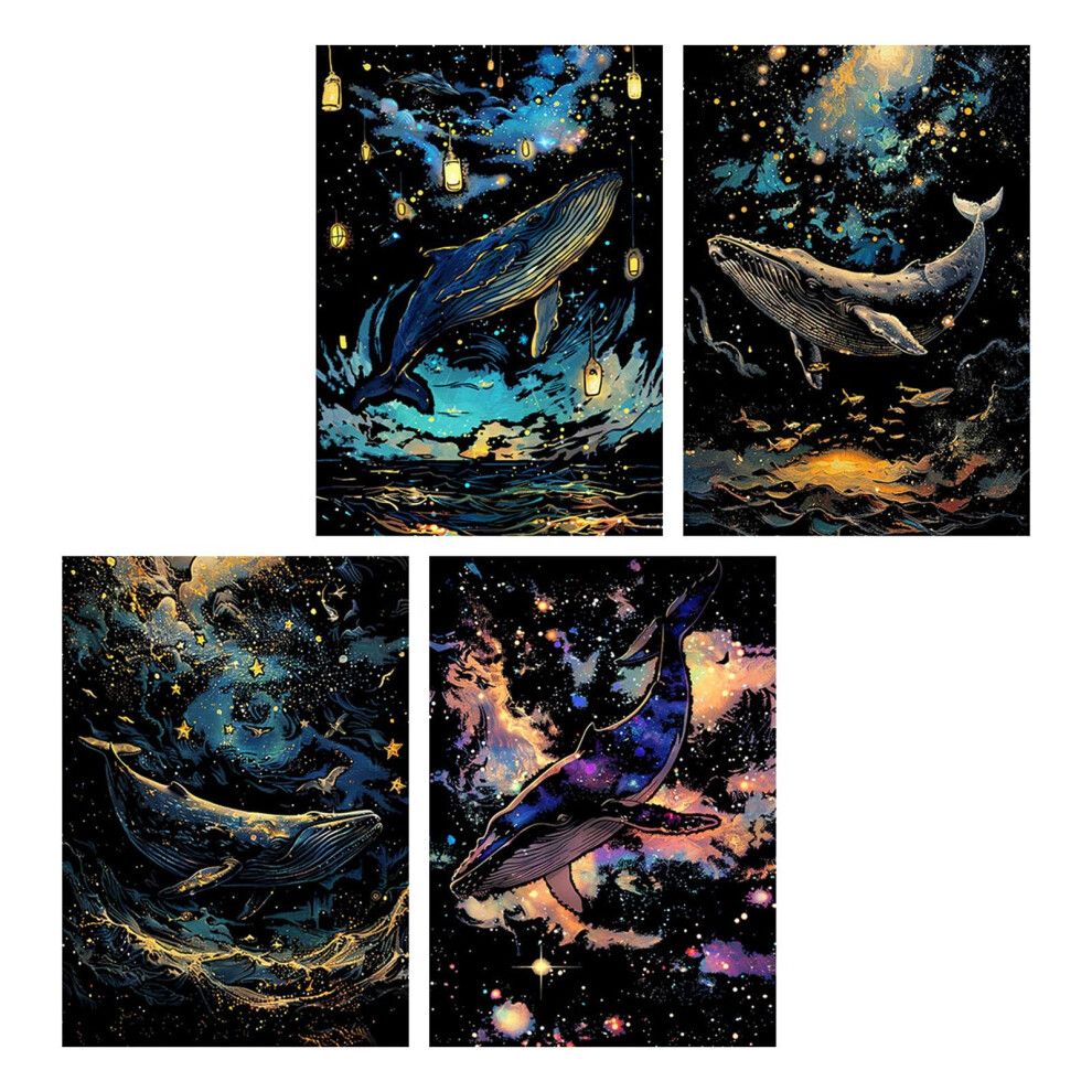 (Blue whale, 21x295cm) 4x Scratch Paper Art Set Educational Childrens Crafts Projects Kits