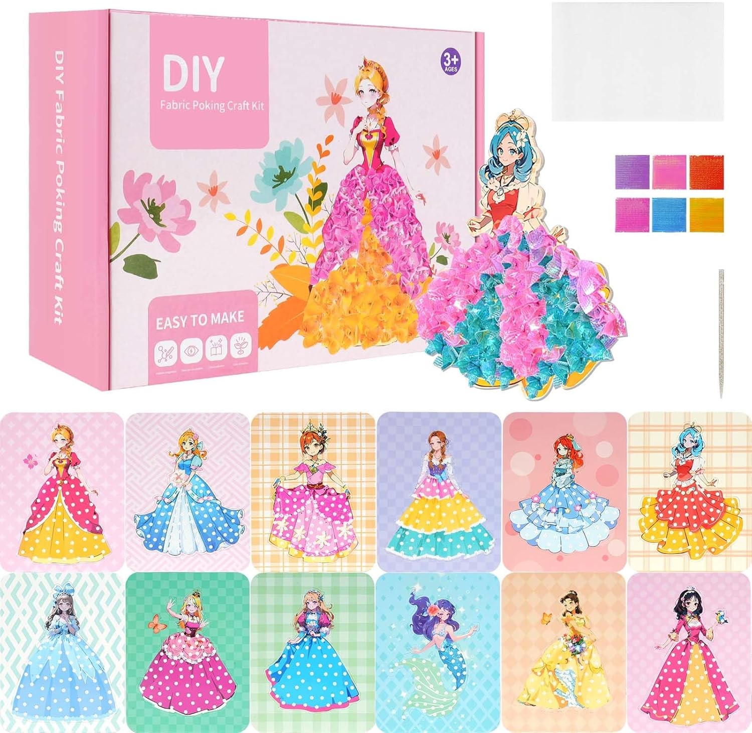 Ainiv Poke Art DIY Toys, 12 PCS Painting Poking Fabric Art Set for Kids, DIY Po