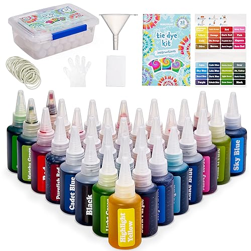 THE TWIDDLERS - Deluxe DIY Tie Dye Creative Art Set for Beginners, Kids or Adults - 32 Colour Bags, 52 Easy Squeeze Dye Bottles, 50ml - Complete Tie Die Kit with Accessories in Clear Storage Case Gift