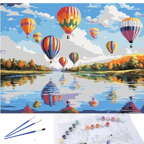 EXERZ Rolled Up Canvas Paint by Numbers – 30x40cm | 20 Colours, 2 Brushes, Compact Gift Box – Ideal Travel Art Set for Kids & Adults, Beginners & Artists (Balloon)
