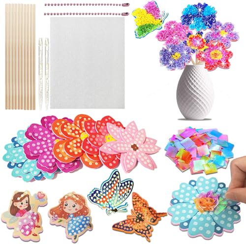 JRD&BS WINL DIY Poke in Art Kit for Kids, Flower Bouquet Creative Decor Mess Free Art Set for Kids Age 3+,Fun Activity Gifts for Boy and Girls 4-8 Year Old DIY Fabric Craft (Flower Bouquet)