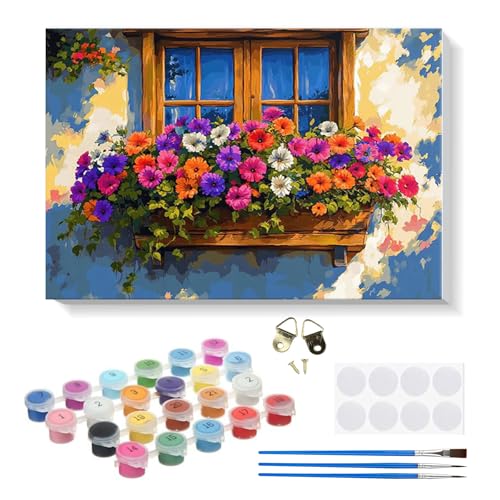 RICUVED Flower Paint by Numbers Kit for Adults–Window Paint by Numbers DIY Oil Acrylic Painting Kits with Wooden Frame 20x30 cm, Easy Art Set for Adults Kids, Perfect for Decor Gift
