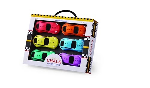 Crocodile Creek Sidewalk Chalk - Outside Art Set for Kids Ages 3 and Up - Encourages Creativity, Fun, and Outdoor Play - Ideal Playground Toys - Includes 6 Race Car-Shaped Pieces of Chalk