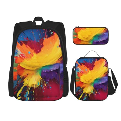 LZQPOEAS 3PCS Colorful paint splatter art Backpack Sets with Insulated Lunch Bag Pencil Case, 17inch Lightweight Laptop Backpack Shoulder Lunch Box and Pencil Bag for Women Men Travel Bags