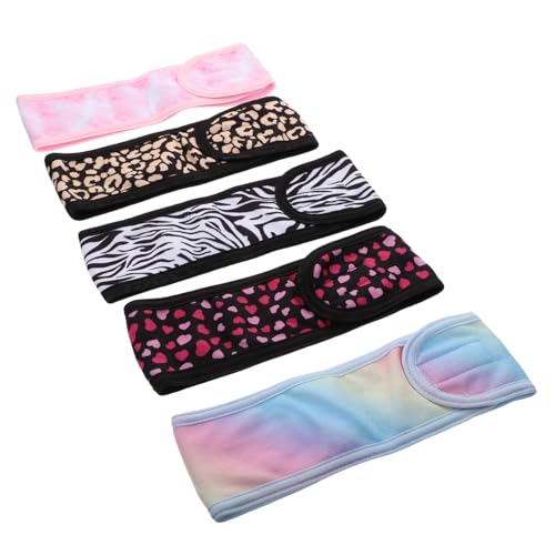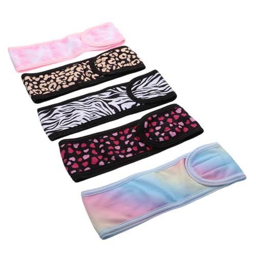 GALPADA 5pcs Printed Sports Headbands for Women Soft Elastic Sweatbands for Running Yoga Shower Lightweight and Skin-friendly Face Wash Hairbands with Zebra Leopard Heart Rainbow Cherry