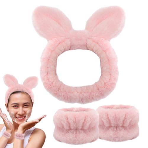 Spa Bands Set, Head & Wrist Ligaments, Yoga Care Headband for Skin Care, Portable Spa-Head Washing Comfort Washing with Animal Ears for Face Washing