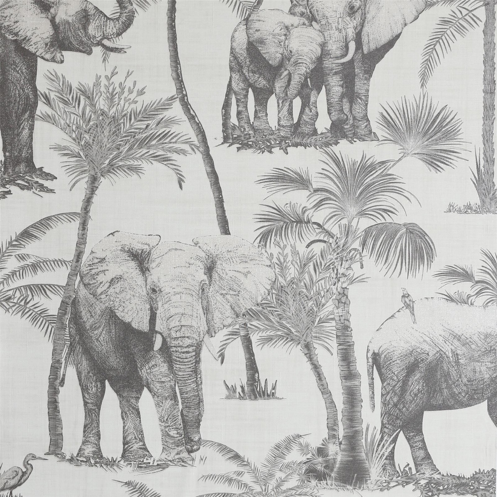 Wallpaper Neutral 53x8x8cm Vinyl Safari Elephant Charcoal Palm LinenFeatureWall