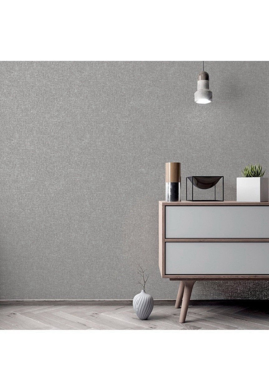 Arthouse Linen Texture Mid Grey Wallpaper Modern Contemporary Feature Wall
