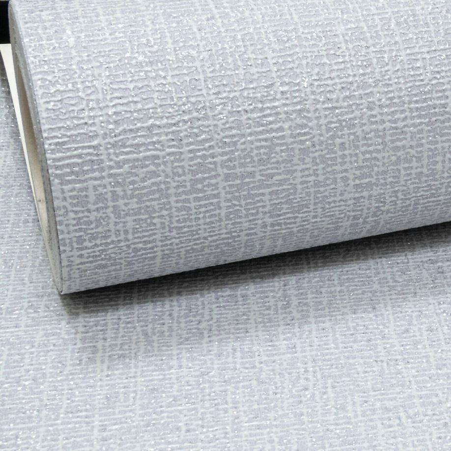 Grey Textured Silver Linen Effect Glitter Vinyl Wallpaper Shiny Heavyweight
