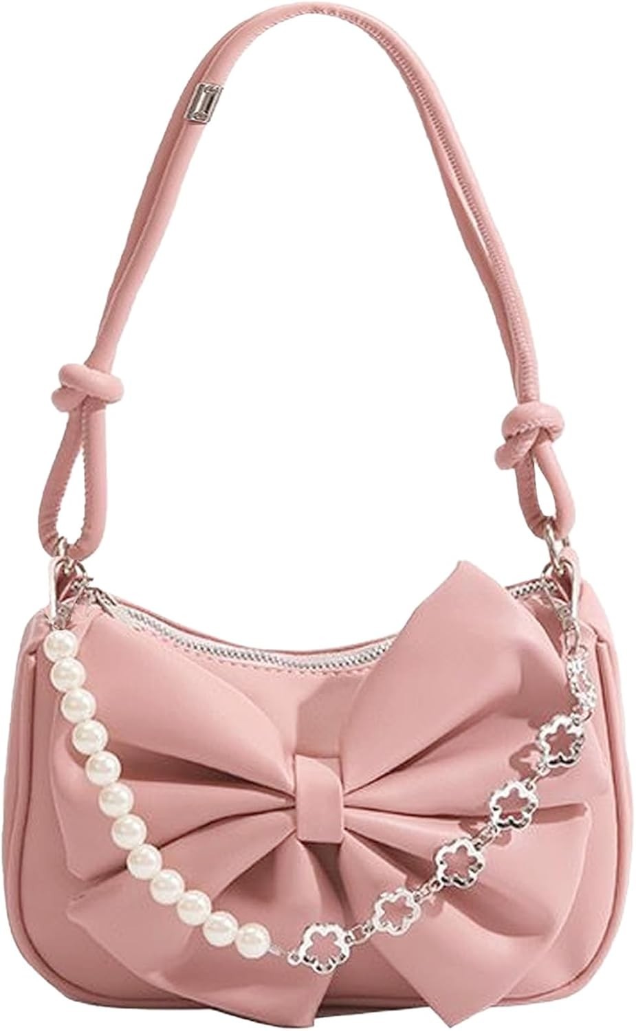 BSITSSS Pink Shoulder Bags for Women Girls, Artificial Leather Pink Handbags Clutch Bag, Y2K Mini Handbag with Zipper Closure, Shoulder Purse Small Lady Underarm Bag, 22x15cm