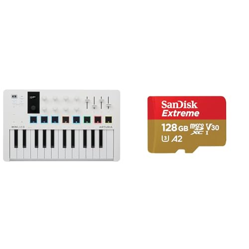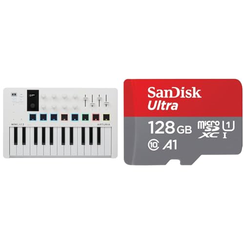 Arturia - MiniLab 3 - Universal MIDI Controller for Music Production, with All-in-One Software Package - 25 Keys, 8 Multi-Color Pads. - White & SanDisk 128GB Ultra microSDXC card + SD adapter