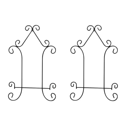 UKCOCO 2pcs Iron Art Wall-mounted Plate Display Stand 25x40cm Black Artwork Hanging Rack Kitchen Wall Hanger Rack for Decorative Plates and Wall Display